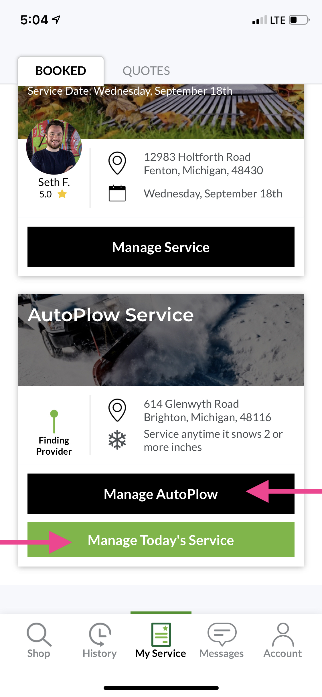 Tap Manage Today’s Service.